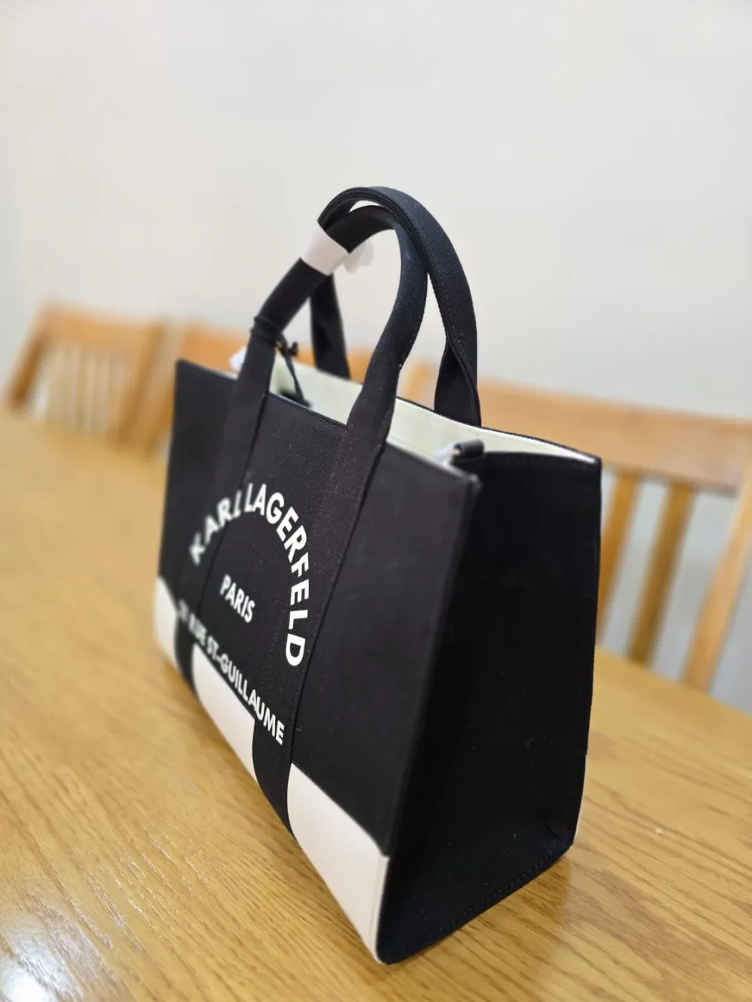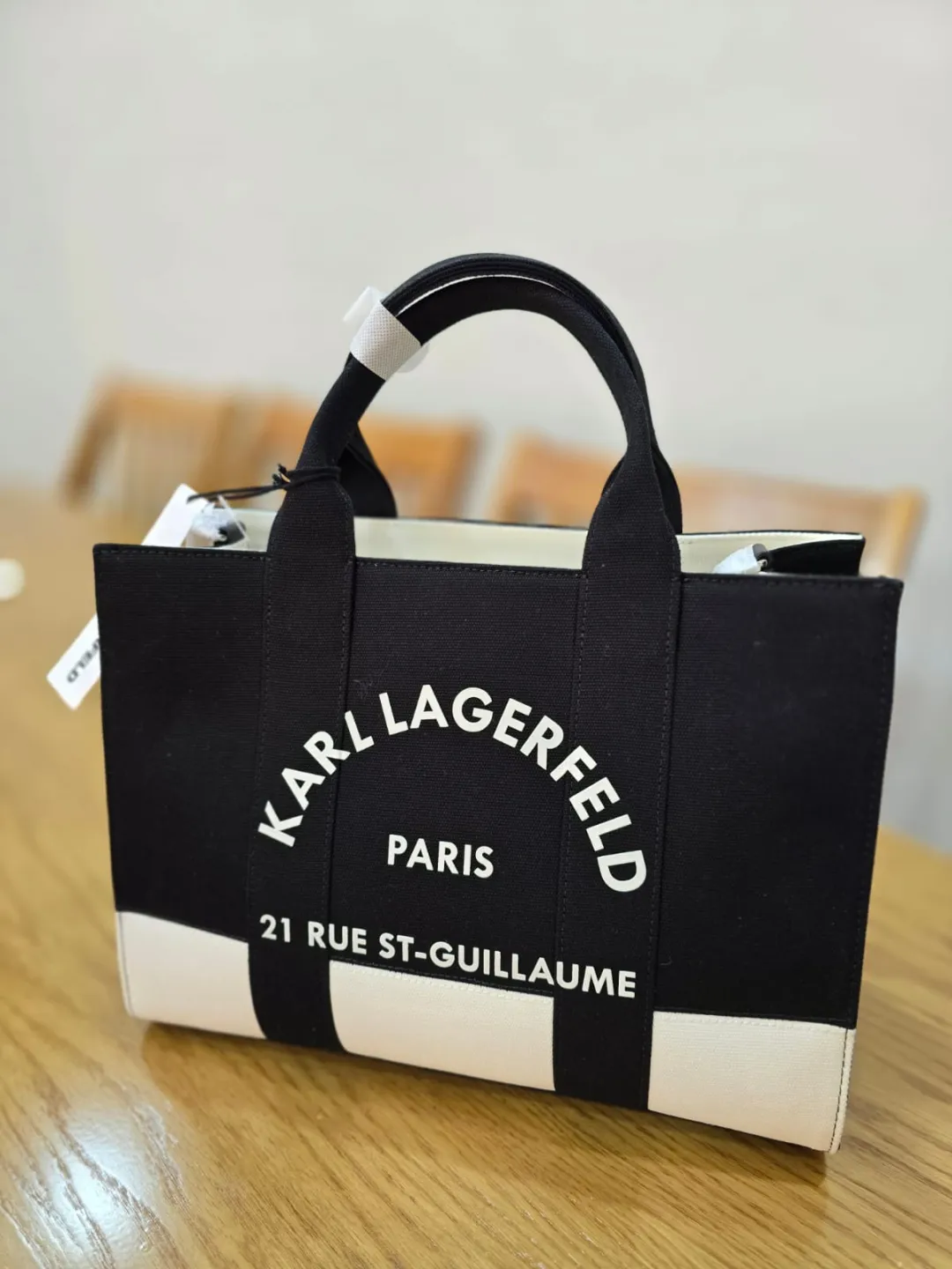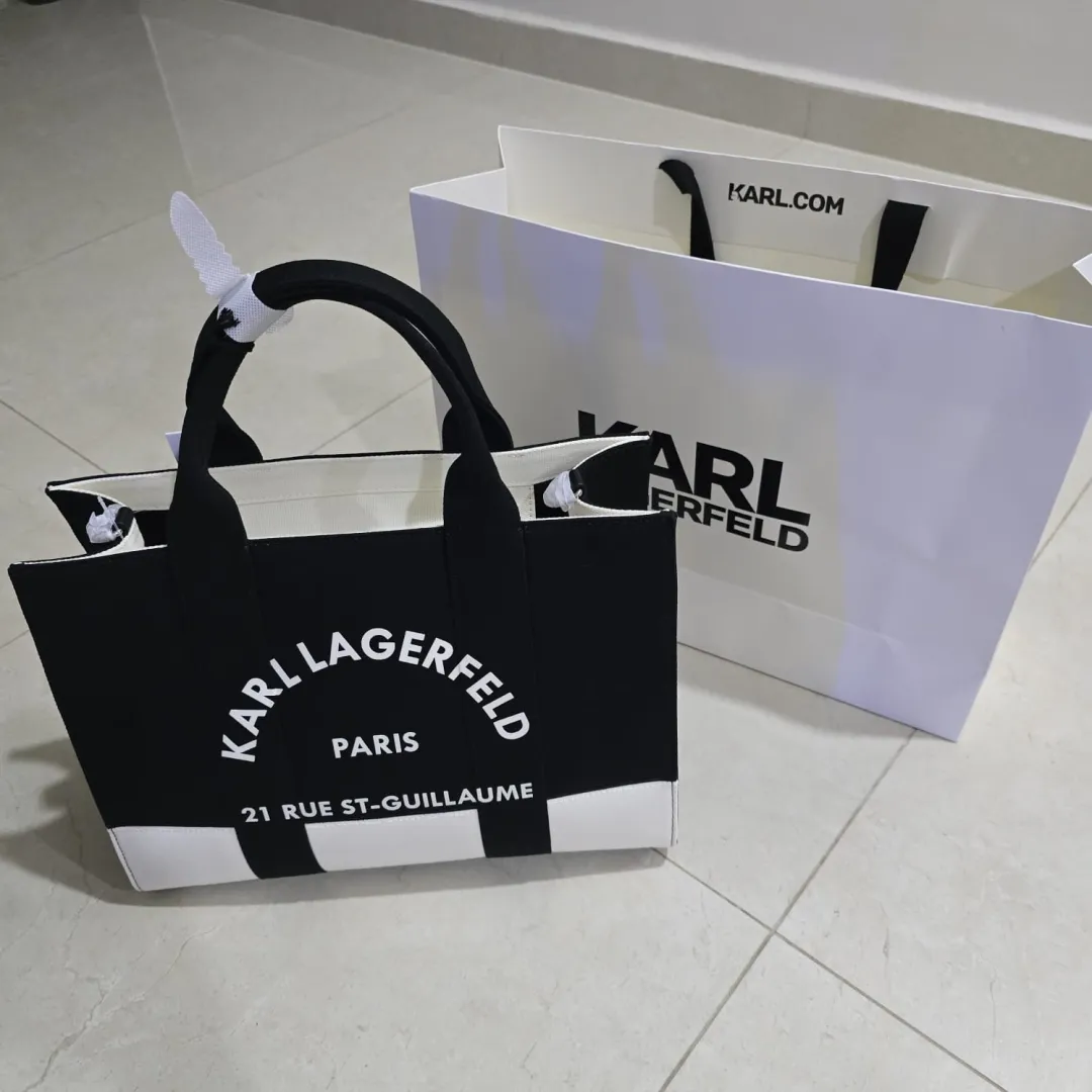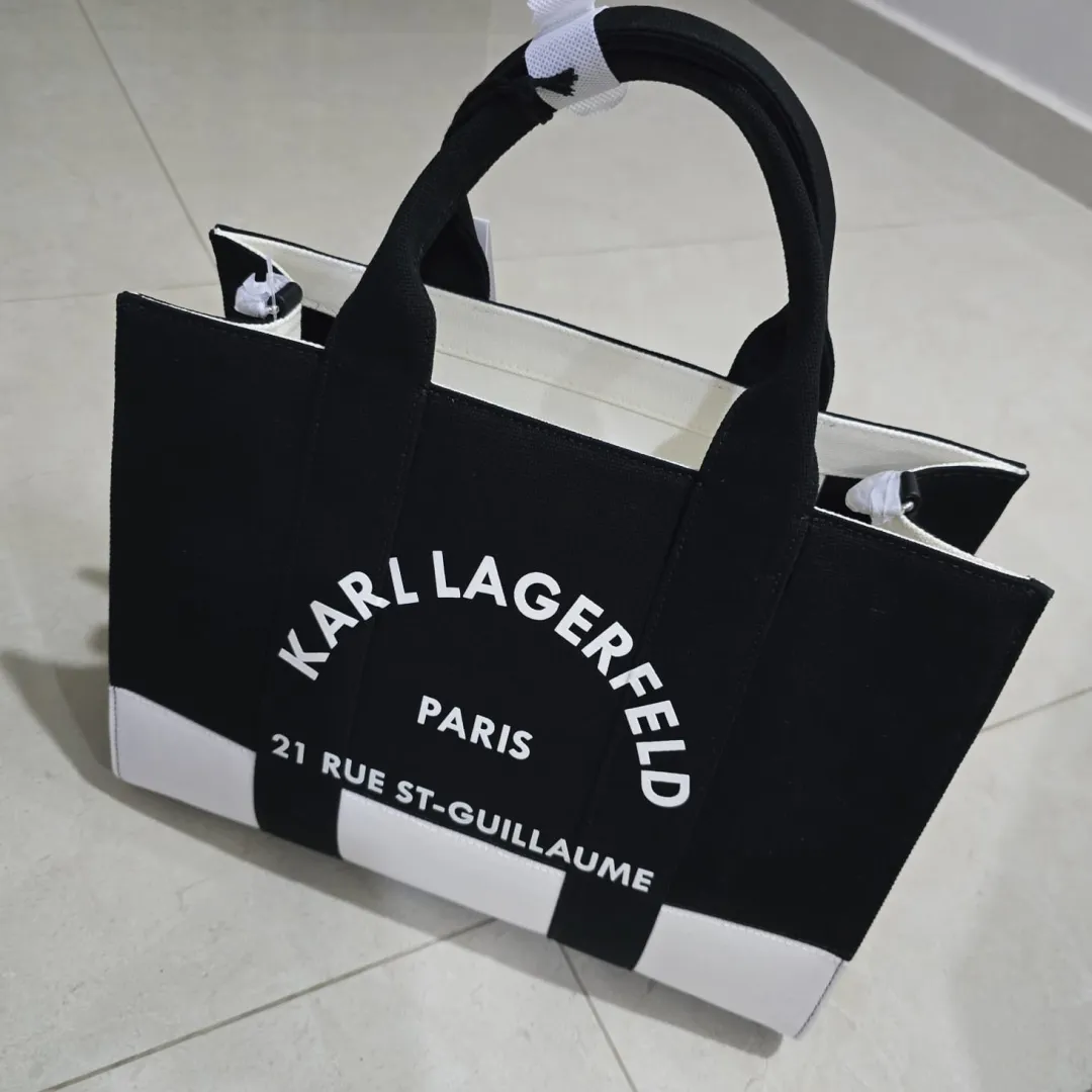 المنتج / Product: حقيبة توت كارل لاغرفيلد | Karl Lagerfeld Rue St-Guillaume Canvas Tote المميزات / Features: مقابض علوية مزدوجة متينة، مساحة داخلية عملية، وحزام كتف إضافي | Sturdy dual top handles, practical interior space, and an additional shoulder strap الحالة / Condition: جديدة | New المقاس / Size: صغير إلى متوسط (توت) | Small to Medium (Tote) الطول 25 cm - العرض 34 cm سعر الشراء / Purchase Price: 130 JD العيوب إن وجدت / Defects: لا يوجد