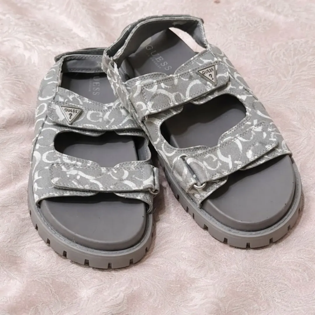 اللون: رمادي مع نقشة شعار Guess المميزة باللون الأبيض.