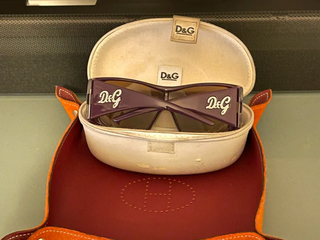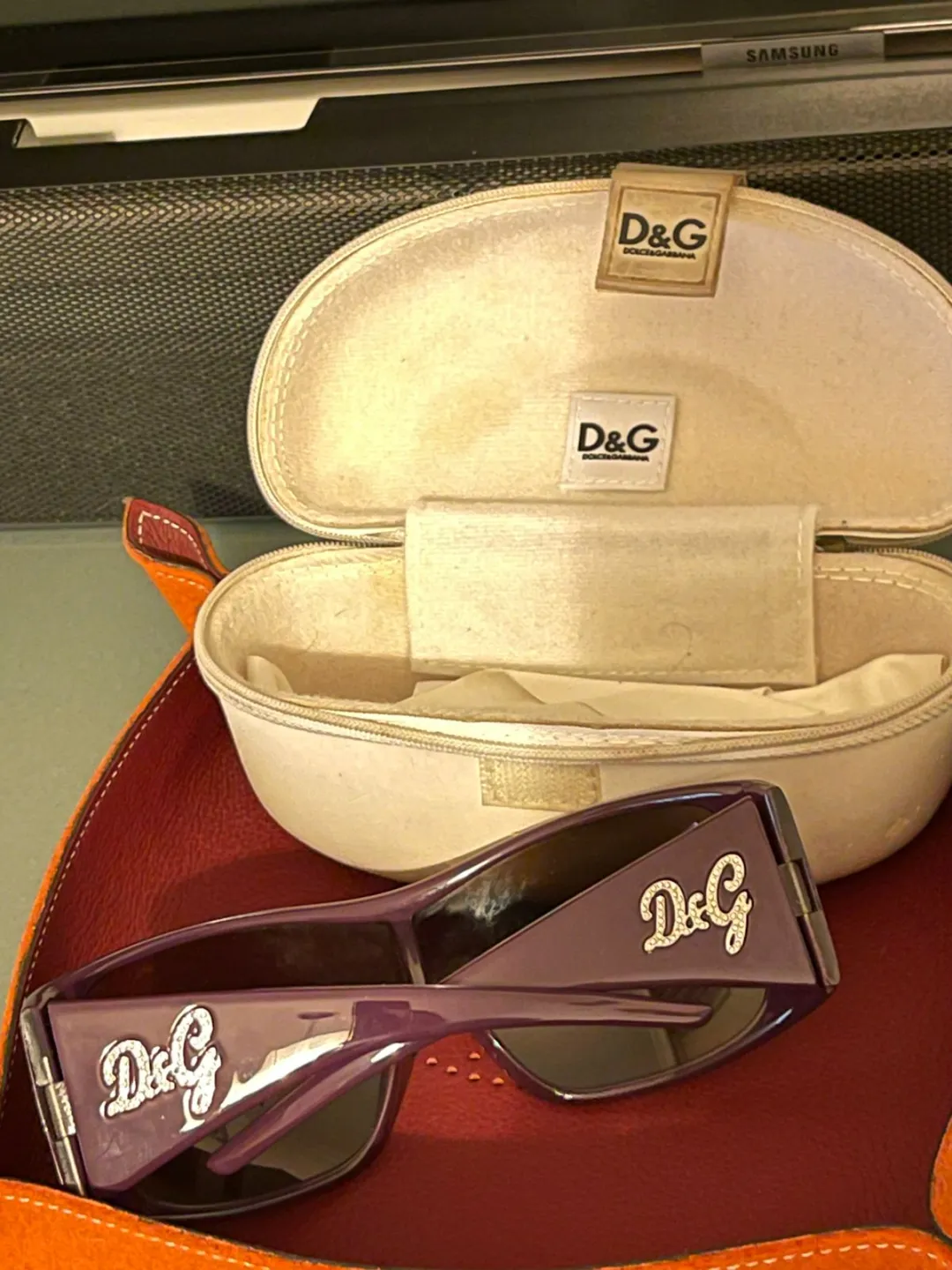 لعشاق القطع الفريدة التي لا تتكرر، نقدم لكم نظارات شمسية من Dolce & Gabbana بإصدار كلاسيكي (Vintage) يجمع بين الجرأة والفخامة الإيطالية. اللون: لوني بنفسجي (Purple) ملكي ومميز جداً، يضفي لمسة حيوية وأنيقة على إطلالتك. التصميم: إطار عريض مرصع بشعار D&G الكريستالي البارز على الجوانب، مما يجعلها قطعة "Statement" بامتياز. الحالة:مستعمل ممتازة اصل/////ي ، وتأتي مع حافظتها الأصلية (Box) للحفاظ عليها. مكان الشراء الأصلي: الإمارات العربية المتحدة.